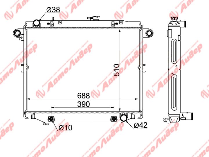 Радиатор охлаждения AUTOLEADER для Toyota Land Cruiser 100 1998-2007 4.2L 1HDFTE /без крышки; TY-HDJ100-1232; 1640017380 1640017390 1640066120