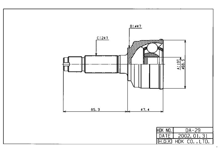 ШРУС наружный / передний правый /левый HDK для YRV 2000- EJVE 1.0; 19*47*24; DA-029; 4341097235 4341097244 0910014